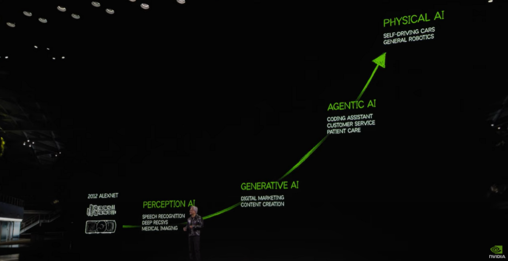 Huang describió con claridad las tres grandes etapas de la evolución de la inteligencia artificial: